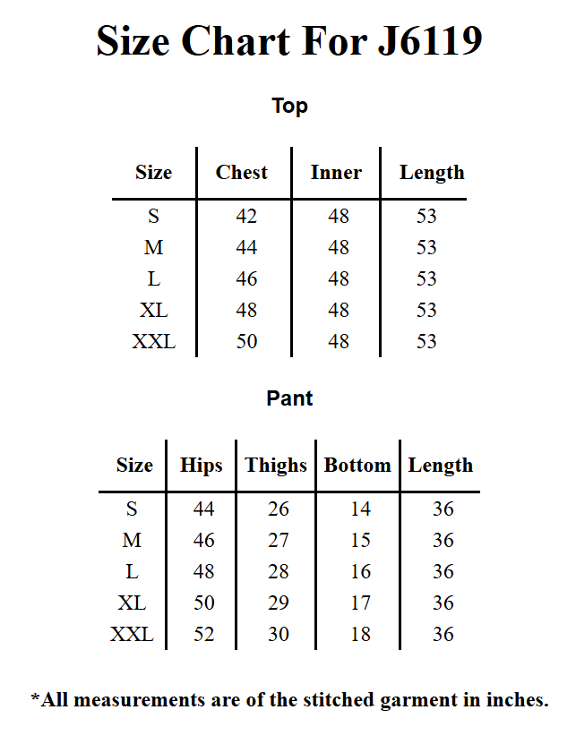 • Pant Length is 36 inch.